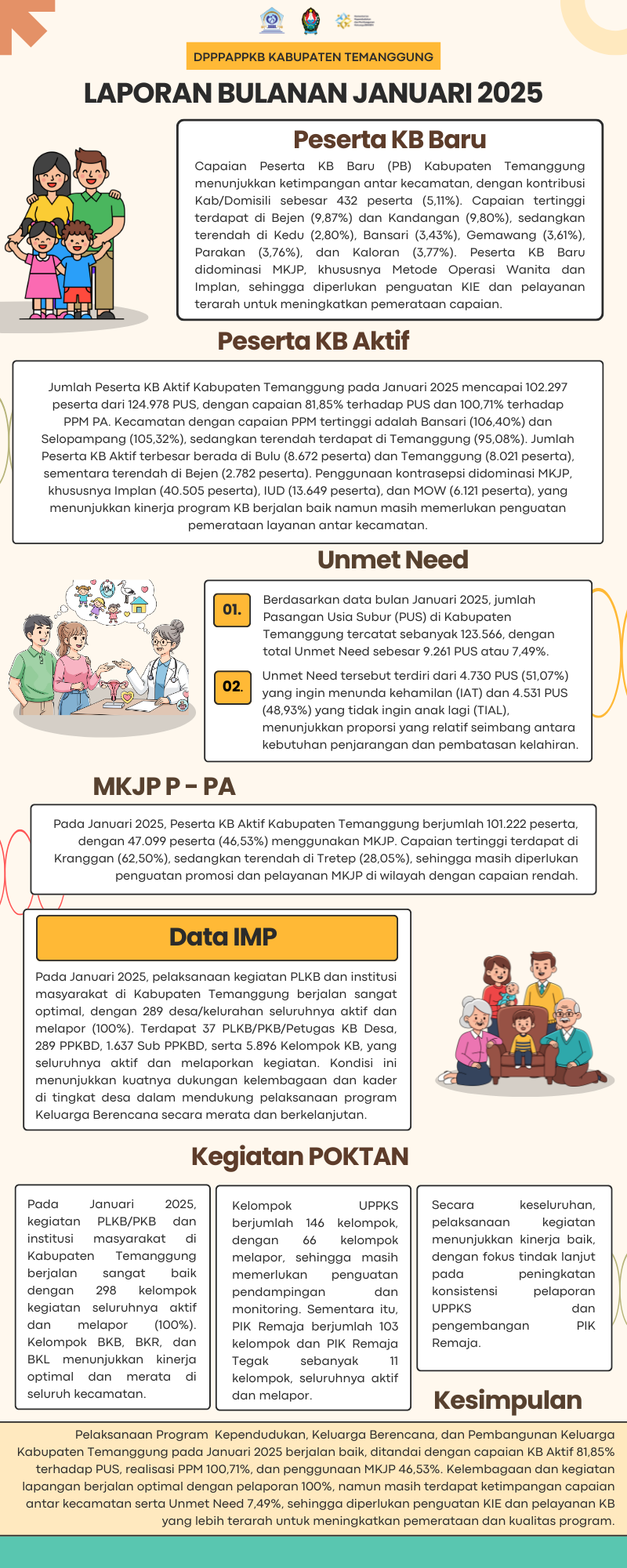 Dinas Pengendalian Penduduk, Pemberdayaan Perempuan dan Perlindungan Anak serta Keluarga Berencana (DPPPAPPKB) Kabupaten Temanggung telah merilis data mengenai Pasangan Usia Subur (PUS) serta capaian program Keluarga Berencana pada bulan Januari Tahun 2025. Publikasi data ini merupakan bagian dari kegiatan monitoring dan evaluasi pelaksanaan Program Bangga Kencana di Kabupaten Temanggung.