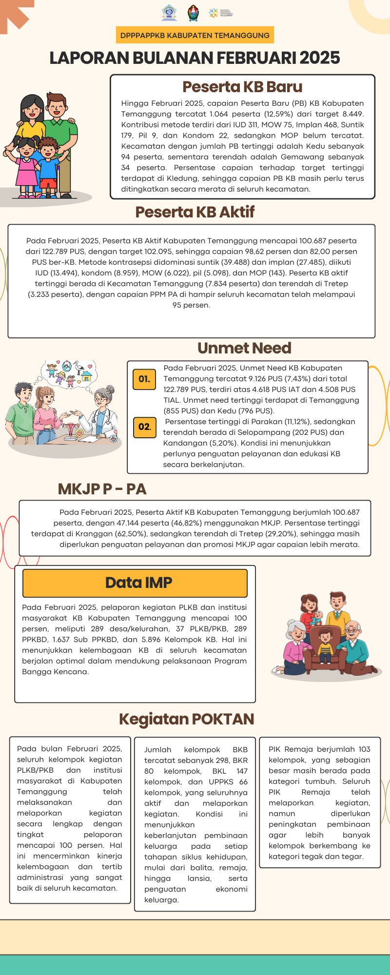 Dinas Pengendalian Penduduk, Pemberdayaan Perempuan dan Perlindungan Anak serta Keluarga Berencana (DPPPAPPKB) Kabupaten Temanggung telah merilis data mengenai Pasangan Usia Subur (PUS) serta capaian program Keluarga Berencana pada bulan Februari Tahun 2025. Publikasi data ini merupakan bagian dari kegiatan monitoring dan evaluasi pelaksanaan Program Bangga Kencana di Kabupaten Temanggung.