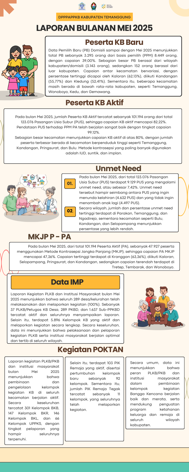 Dinas Pengendalian Penduduk, Pemberdayaan Perempuan dan Perlindungan Anak serta Keluarga Berencana (DPPPAPPKB) Kabupaten Temanggung telah merilis data mengenai Pasangan Usia Subur (PUS) serta capaian program Keluarga Berencana pada bulan Mei Tahun 2025. Publikasi data ini merupakan bagian dari kegiatan monitoring dan evaluasi pelaksanaan Program Bangga Kencana di Kabupaten Temanggung.
