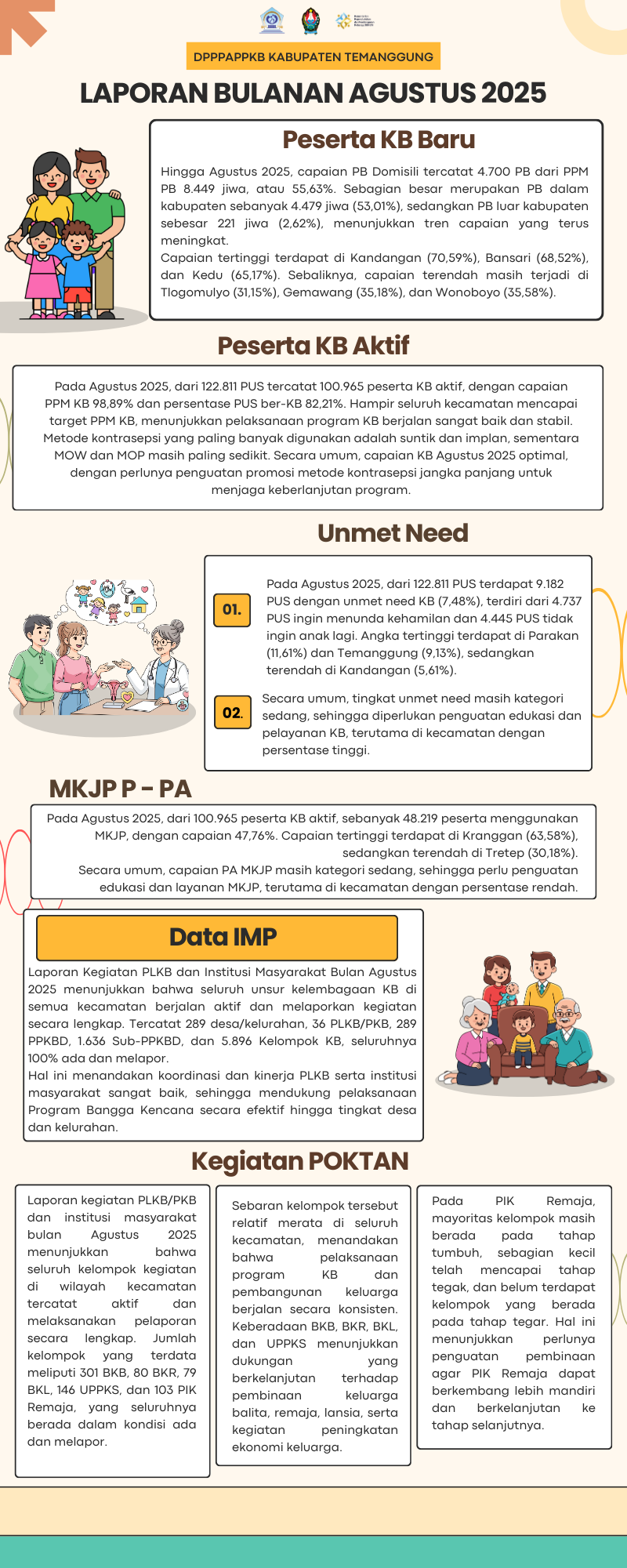 Rilis data ini diharapkan dapat memberikan gambaran komprehensif mengenai pelaksanaan program KB di Kabupaten Temanggung, sekaligus menjadi dasar dalam perencanaan, pengambilan kebijakan, serta evaluasi program di masa mendatang.