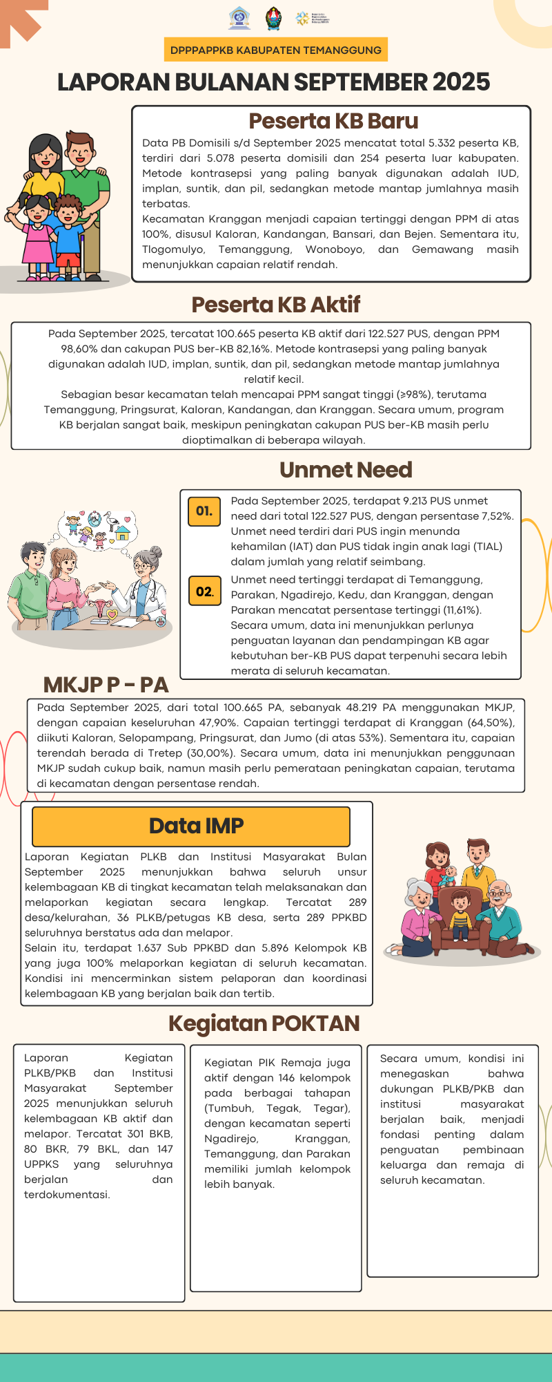 Dinas Pengendalian Penduduk, Pemberdayaan Perempuan dan Perlindungan Anak serta Keluarga Berencana (DPPPAPPKB) Kabupaten Temanggung telah merilis data mengenai Pasangan Usia Subur (PUS) serta capaian program Keluarga Berencana pada bulan September Tahun 2025. Publikasi data ini merupakan bagian dari kegiatan monitoring dan evaluasi pelaksanaan Program Bangga Kencana di Kabupaten Temanggung.